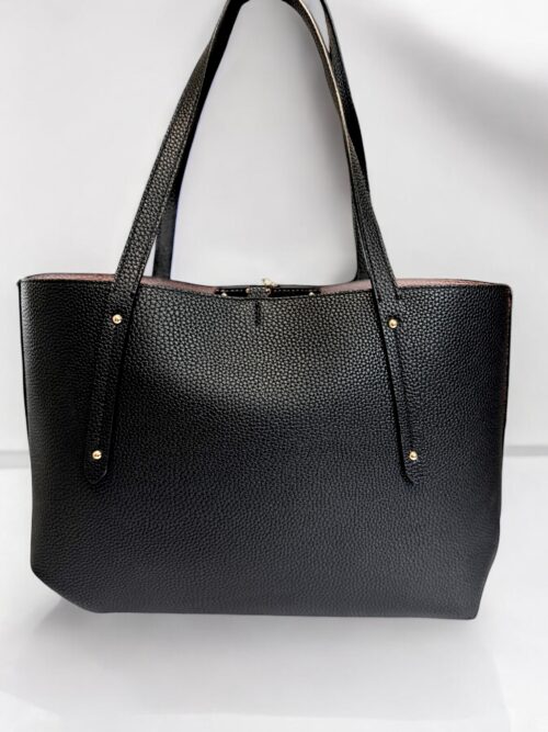 Idealna do pracy oraz na uczelnie, mieszcząca format A4, typ shopperka. Torebka posiada metalowe nóżki, które zabezpieczają dolną część torebki. Shopperka posiada również jedną mniejszą torebkę dołączoną w środku oraz małą kopertówkę/portfel.