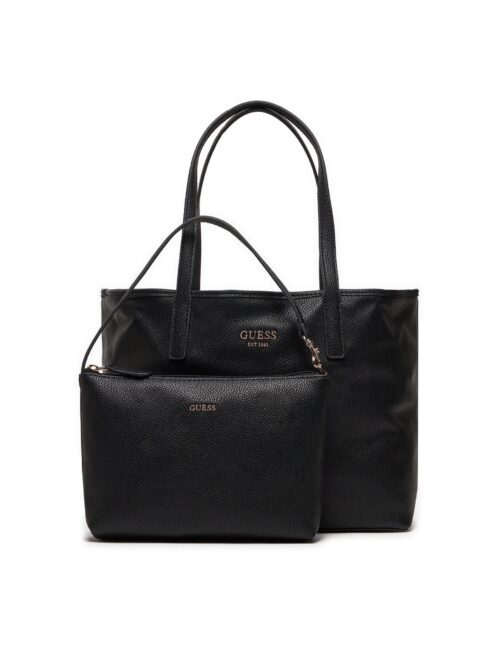 Torebka Guess model Vikky 2w1, zapinana na magnes, wykonana ze skóry ekologicznej. Długie uchwyty pozwalają na noszenie torebki w ręku lub na ramieniu. Idealna do pracy oraz na uczelnie, mieszcząca format A4, typ shopperka. Torebka posiada metalowe nóżki, które zabezpieczają dolną część torebki. Shopperka posiada również jedną mniejszą torebkę dołączoną w środku.